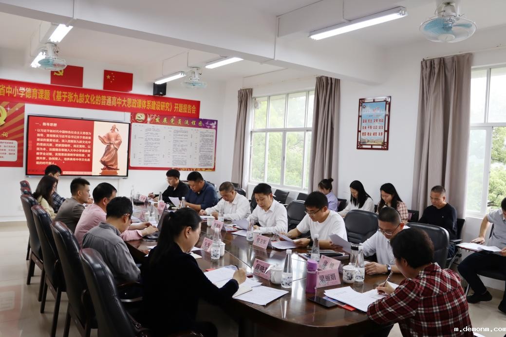 紧接的省级课题《基于张九龄文化的普通高中大思政课体系建设研究》开题报告会是会议的一大亮点。课题负责人徐健校长从课题的研究背景、研究目标、研究内容、研究方法等方面进行了详细汇报。课题专家组组长薛晓芳院长组织专家组成员进行评议指导,首先对课题的研究价值和创新性给予了充分肯定,然后从研究思路、研究方法、预期成果等方面提出了宝贵的意见和建议,为课题的顺利开展提供了有力的支持。
